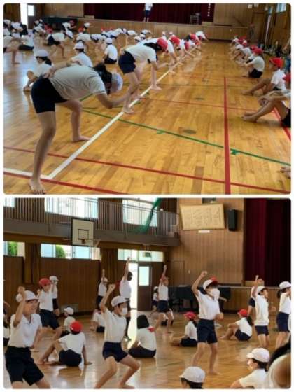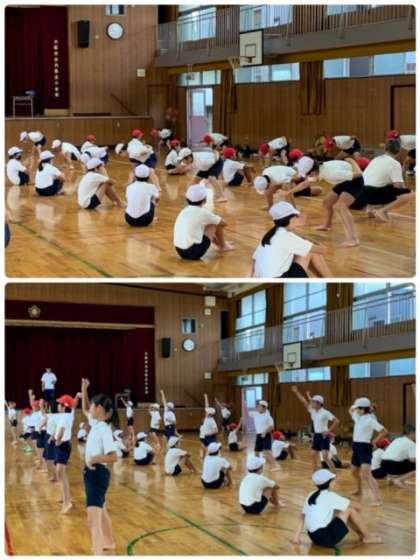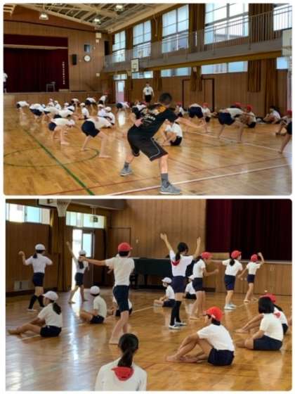 5・6年合同で、運動会の集団演技で行う「ソーラン節」の練習をしています。一つひとつの動きの完成度を高めようと、ペアで互いに見て、切磋琢磨しています。高学年ならではの迫力あるソーランを楽しみにしています!!