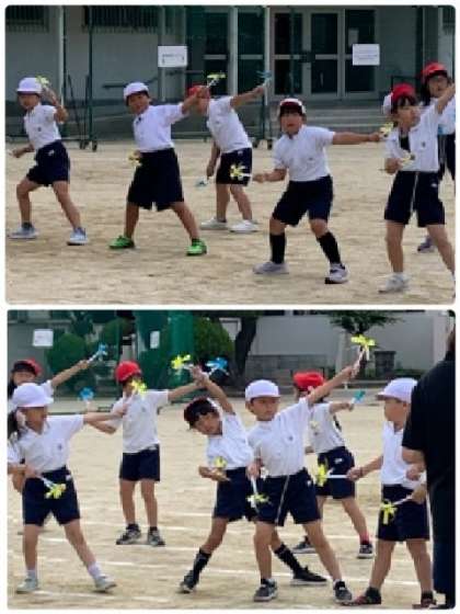 低学年〜運動会の団体演技の練習をしています! 公開日 2023/10/17 更新日 2023/10/17 お知らせ 今週末に運動会本番が迫ってきました。各学年とも、運動会の練習も大詰め!低学年の集団演技の練習にも熱が入っています。「もうすぐ運動会だね!」と、とても楽しみにしているようです。 低学年の団体演技の練習も、先生の手作りのかわいらしい杖を持って・・本番さながらに、頑張っています。 いいね(0)