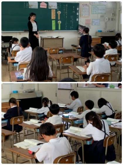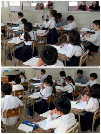 第1場面と第4場面の挿絵を見ながら、二人がお手紙を待つ様子について考えました。第1場面の悲しい気持ちと比較しながら、気持ちが変わったことに気づくことができていました。発表するときには、「教科書の・・ページの・・行目に・・・と書いてあることから」と根拠となる叙述も示して発表している姿に感心しました。