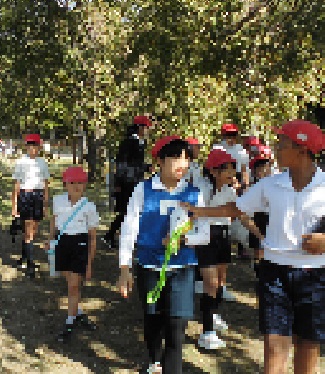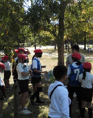 長居公園に到着しました。縦割り班に分かれて、「オリエンテーリング」のスタートです。長い植物園の中のポイントにいる先生を見つけて課題をクリアーすると得点がもらえます。6年生がリーダーとなって、ポイントを探しにいきました。結構広いので、なかなか苦労していたようです。