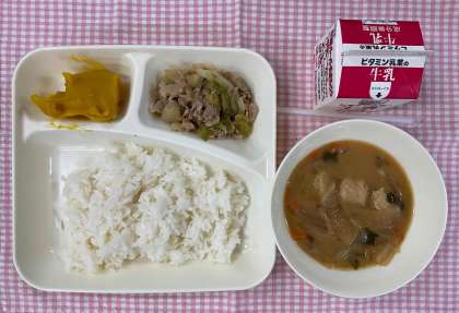 っ今日の給食は「ごはん、豚肉と野菜のいためもの、いわしのつみれ汁、かぼちゃういろう、牛乳」でした。今日のデザートのういろうは手づくりです。蒸し上がったういろうはもちもち!みんなに分けるときはくっついて少し手間がかかりましたが、おいしいデザートでした。