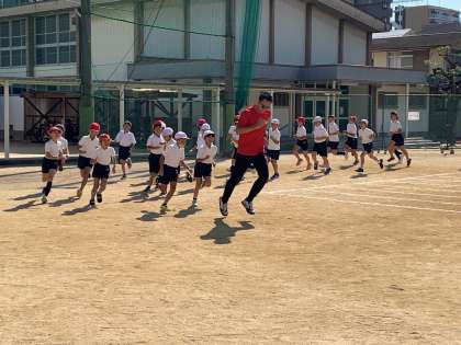 10月31日(火)、西区の教育施策の1つとして、大阪ガスネットワークの陸上クラブ「NOBY T&F CLUB」のコーチにお越しいただき、4年生対象に陸上教室を実施していただきました。お越しいただいたコーチ陣は3名です。