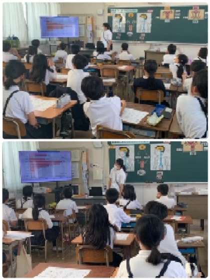 4年生対象に、保健室の先生に「思春期にあらわれる体と心の変化」について授業をしていただきました。学習の中で、変化があらわれる時期は、人それぞれ違いがあることも知りました。そして、不安や困ったときは、お家の方や先生など、身近な大人に相談しようと伝えてもらっています。4年生も真剣に話を聞いていました。