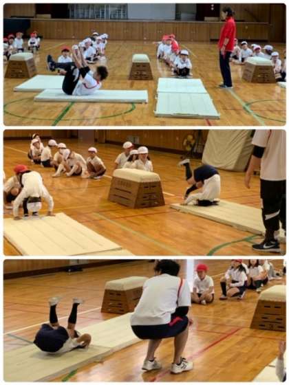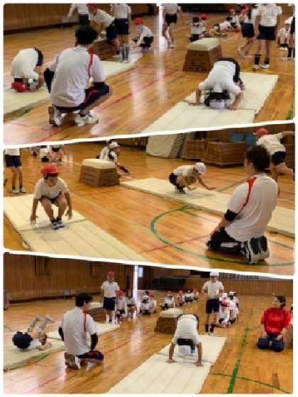 3年生 体育〜プロのインストラクターに指導していただきました! 公開日 2023/11/15 更新日 2023/11/15 お知らせ 11月15日(水)、西区の教育施策により、西屋内プールよりプロのインスタラクターを派遣していただきました。3年生の体育で、跳び箱の導入の授業をしていただきました。 ウオーミングアップの後、まずは前転をしました。続いて、ロイター版に踏切の仕方を練習しています。 いいね(0)