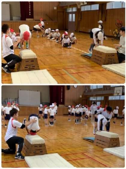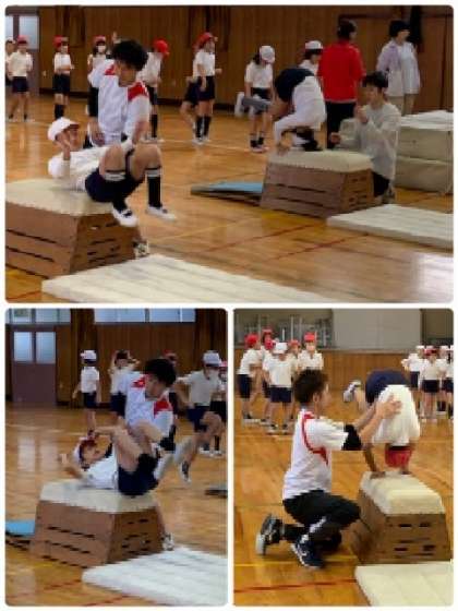 3年生 体育〜プロのインストラクターに指導していただきました! 公開日 2023/11/15 更新日 2023/11/15 お知らせ 次に、ロイター版で踏み切ってから、跳び箱の上で前転しています。その動きができたら、次は、走ってきて・・・。3年生は、インストラクターの方の注意点をよく聞いて、真剣な表情で取り組んでいました。 いいね(0)