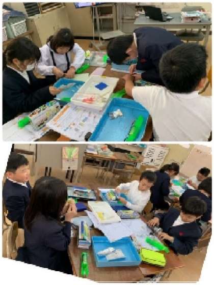 続いて、班の形になって、豆電球がつくかどうかの実験をしました。理科の学習に興味を持って、学習や実験に取り組んでいました。最後は、みんなのがん考えを合わせて、考察をまとめました。