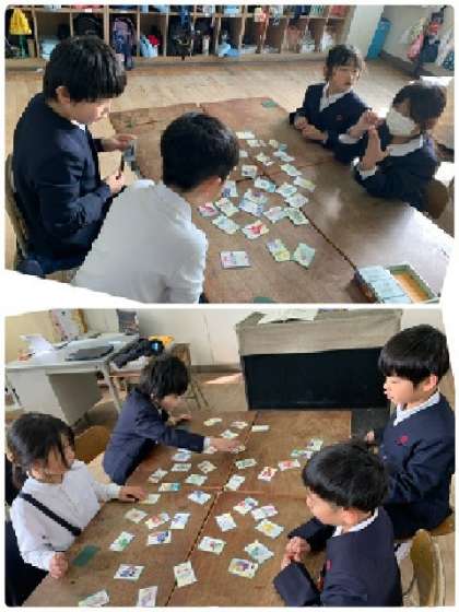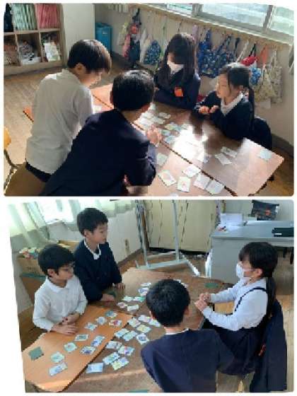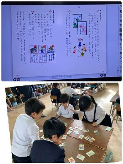 2年2組の国語の時間です。単元「おばあちゃんに 聞いたよ」の学習をしています。その中に出てきた「かるた」に、実際に取り組んでみました。とても楽しんでいました。
