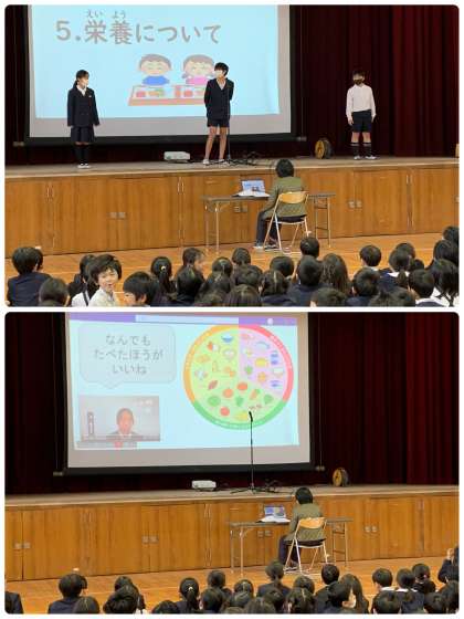最後に、「栄養について」。「あか・きいろ・みどり」の3色のものをバランスよく食べましょうと呼びかけてくれました。