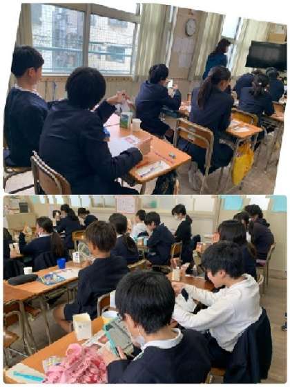 1月31日(水)、6年生対象に「歯・口の健康教室」を実施しました。講師の方にお越しいただき、様々な角度から話をしてもらいました。虫歯だけでなく、歯周病にも気をつけて、歯の健康を守ることが大切だと教えてもらっています。まずは、「チェックシート」で自己チェックしています。