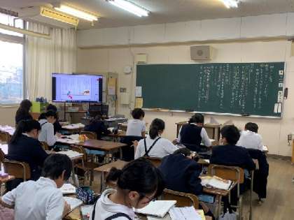 4年生の国語の時間です。単元「世界一美しいぼくの村」の学習をしています。今日のめあては、「ヤモのふるさとを思う気持ちや家族に対する気持ちを読みとろう」です。「父に対して」「兄さんに対して」それぞれの考えを出しあっています。
