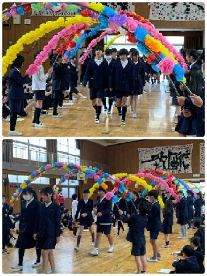 3月1日(金)、九条北小学校の「卒業をお祝いする会」を実施しました。1年生から5年生までのみんなで、準備を進めてきました。花道を通って入場してくる6年生を拍手で迎えました。