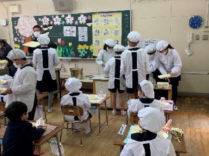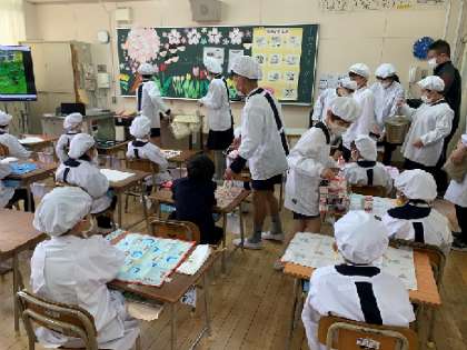 1年生〜6年生が給食の配膳をしてくれました! 公開日 2024/04/10 更新日 2024/04/10 お知らせ 給食の時間になりました。1年1組の教室には、6年1組のお兄さん・お姉さんが来て、配膳をしてくれました。準備ができたところで、1年生からお礼の言葉「ありがとうございました!」を伝えました。 いいね(0)