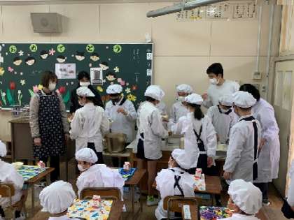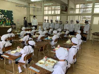 1年生〜6年生が給食の配膳をしてくれました! 公開日 2024/04/10 更新日 2024/04/10 お知らせ 1年2組へは、6年2組のお兄さん・お姉さんが来てくれました。みんなの配膳の後、1年生からお礼の言葉「ありがとうございました!」を伝えました。6年生の皆さん、明日もよろしくお願いします! いいね(0)
