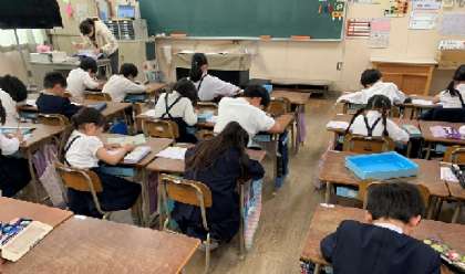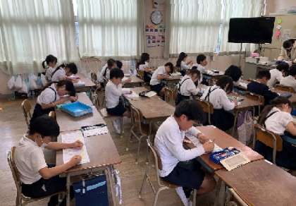 2年生の国語の時間です。授業の初めに漢字の練習に取り組んでいます。ていねいな字を書くことに心がけています。