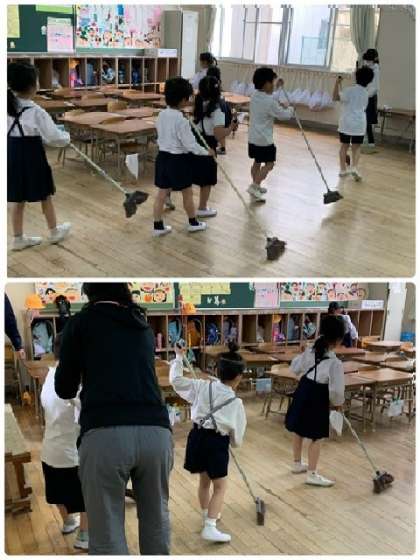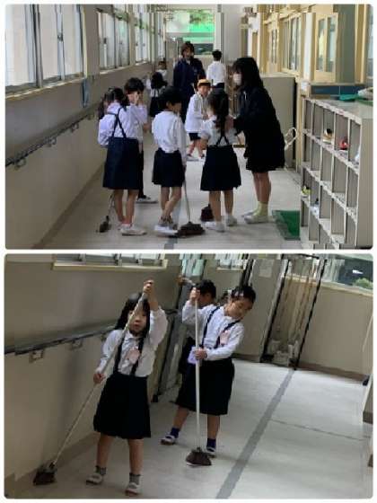 1年生〜掃除もがんばっています! 公開日 2024/04/22 更新日 2024/04/22 お知らせ 掃除の時間です。1年生も、みんなで協力して、がんばっています。ほうきの使い方など、6年生のお兄さん・お姉さんが、やさしく教えてくれました。 いいね(0)