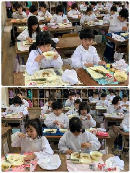 2年生 給食〜今日は「こどもの日のお祝い献立」! 公開日 2024/04/24 更新日 2024/04/24 お知らせ 2年生の教室の様子です。みんなで「いただきます!」をしました。今日の献立が、楽しみだったようです。 いいね(0)