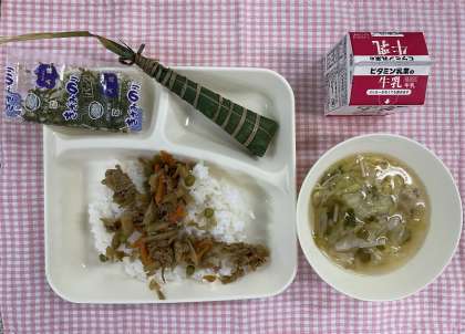 23日は「きんぴらちらし、すまし汁、ちまき、牛乳」でした。