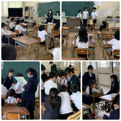 4月24日(水)、「地域子ども会」を実施しました。登校班で集まって、高学年のリーダーを中心に進めています。メンバーの再確認に続いて、集合時間・集合場所・通学路の確認をしました。その他、集団登校のルールも確認しています。