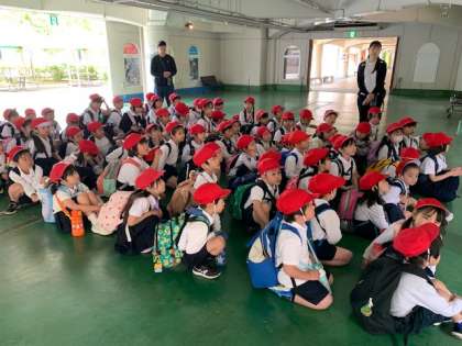 入園しました。トイレとお茶タイムの後、見学を始めます。