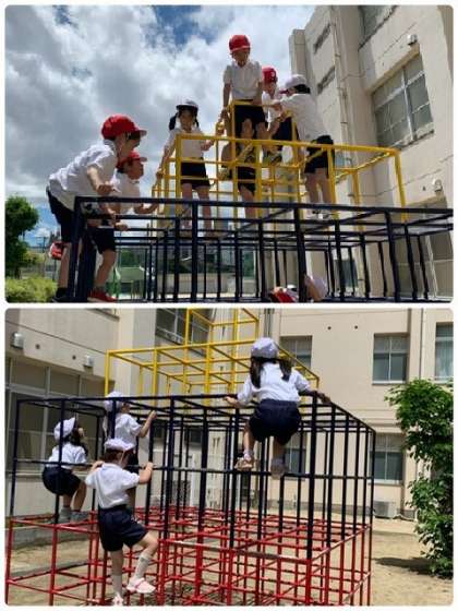 1年生 体育〜がんばって挑戦しました! 公開日 2024/05/08 更新日 2024/05/08 お知らせ 1年2組の体育の時間です。九条北小学校の運動にある遊具に、順番に挑戦していきました。最後は、鉄棒にも! いいね(0)