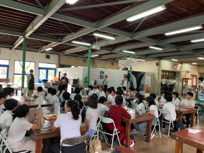 説明を聞いて、順番にカレーをよそってもらいました。