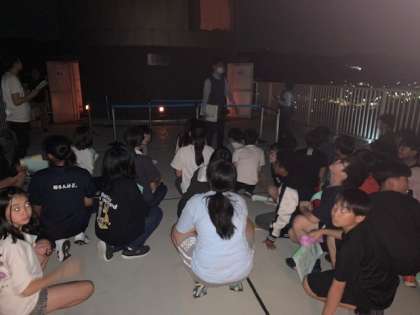 天体観測の時間です。お天気を心配していましたが、月の観測ができることになりました。