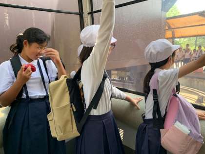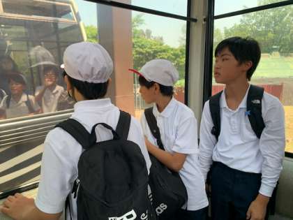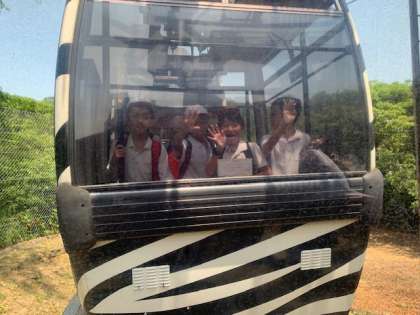 ゴンドラに乗って、バスで遊園地へ移動します。
