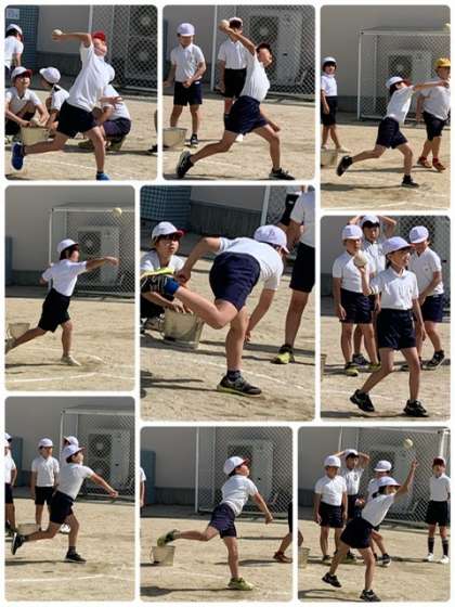 5月30日(木)、4年生が、運動場で行う「体力テスト」を実施しました。「50m走」では、見本で走ってくれた先生の走りに、より意欲向上!頑張っていました。「ソフトボール投げ」でも、遠くへを意識して挑戦していました。すばらしい記録が出た時には、歓声もあがっていました。