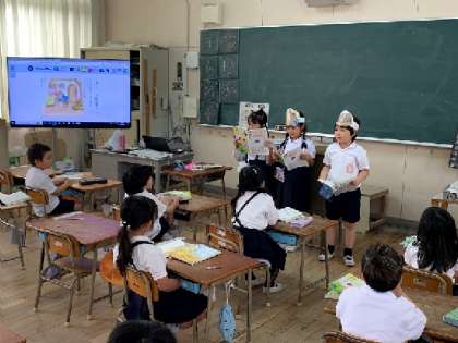1年2組の国語の時間です。単元「とん こと とん」の学習をしています。班で分担して「音読」をしました。先生からの「音読してくれる人?」という問いかけに、積極的に手を挙げていました。発表の時は、少し緊張気味でしたが、しっかりとした声で音読をすることができました。頑張っています!!