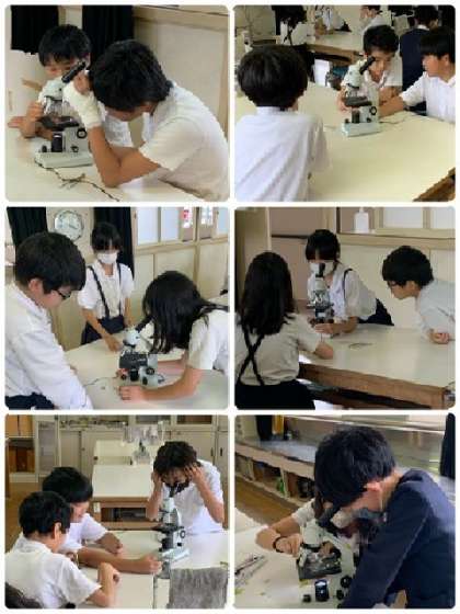 6年生 理科〜気こうを観察してみよう! 公開日 2024/06/14 更新日 2024/06/14 お知らせ 6年2組の理科の時間です。葉を折り曲げねじるようにして葉をさくと、うすい皮が出てきます。それをけんび鏡で観察しました。今日は、学校で育てている「ほうせんか」の葉を使って観察しました。 最初に、5年生の時に学習した「けんび鏡」の取り扱い方について振り返りをしてから、班で観察を開始しました。葉からうすい皮をみつけるのに苦労していました。観察できたときには、とてもうれしそうでした。 いいね(0)
