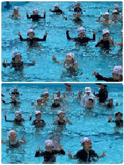 低学年〜プール開き! 公開日 2024/06/24 更新日 2024/06/24 お知らせ 6月20日(木)、低学年の「プール開き」です。1年生にとっては、小学校で初めての水泳学習となります。1つ1つていねいに、動きや注意事項の確認をしました。音楽に合わせて、水に慣れる活動をしています。 いいね(0)