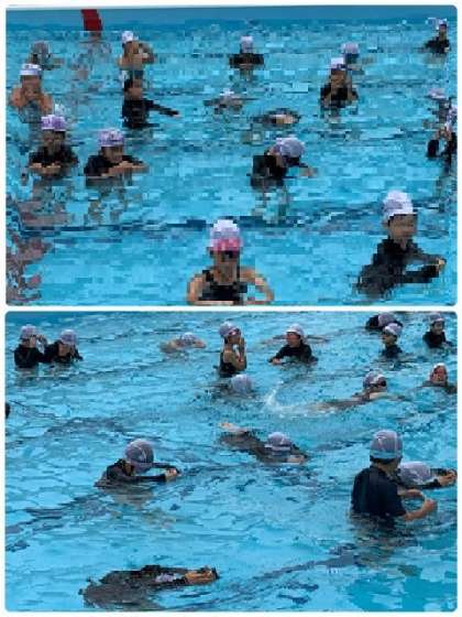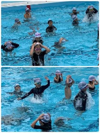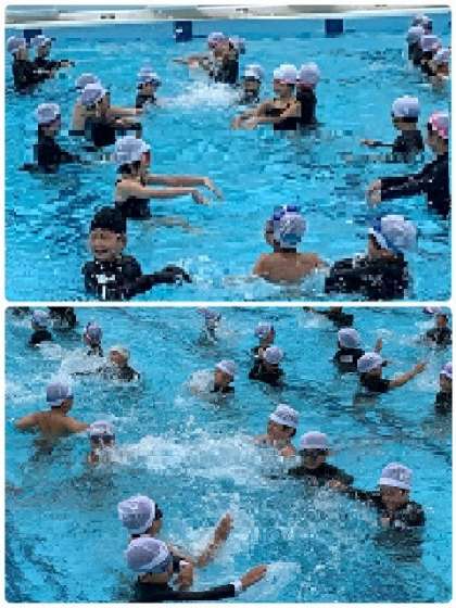 6月25日(火)、その事業を活用して、低学年対象の水泳学習にプロのインストラクターを派遣していただきました。水に慣れる活動の中に、徐々に泳ぐためのスキル獲得の要素を組み込んだ指導をしてくれました。顔を水につける、ミスの中で息を吐く、顔を上げた時に息を吸うなど、段階を追って練習していきました。