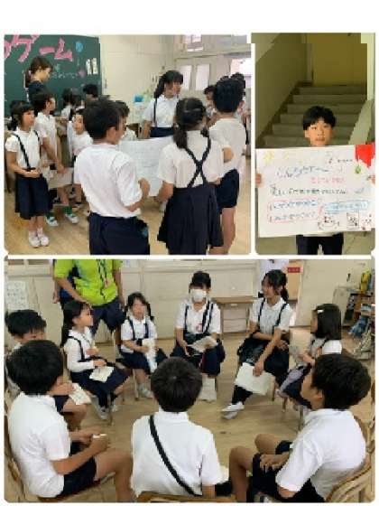 「じんろうゲーム」のコーナーです。グループで相談して正解を見つけます!
