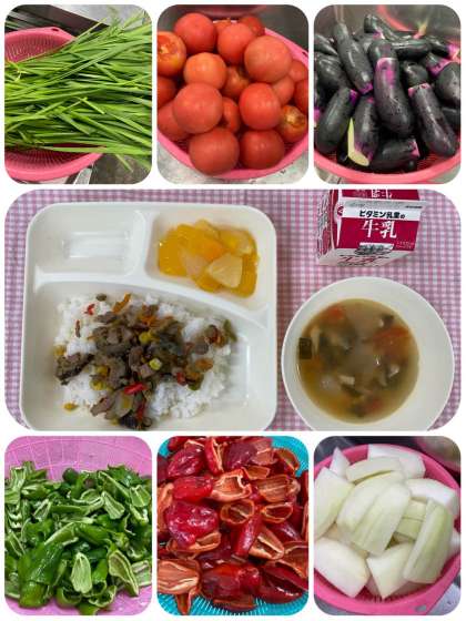 2日の給食〜カラフル夏野菜!〜 公開日 2024/07/03 更新日 2024/07/03 給 食 2日の給食は「夏野菜飯、パワースープ、トロピカルゼリー、牛乳」でした。これは学校給食献立コンクールでの受賞作品です。今回の献立には、夏野菜がたくさん!なす、トマト、ピーマン、にら、とうがん、そして赤ピーマンが入って、色どりも大変きれいでした。 いいね(0)