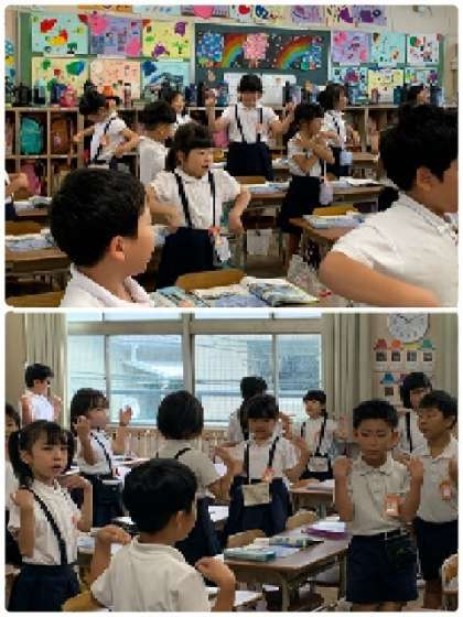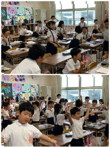 2年生の音楽の時間です。体も動かしながら音楽を楽しんでいます。