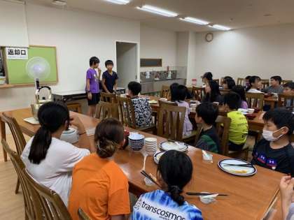 食事が終わりました。先程、通り雨がありましたが、予定通りキャンプファイアーを実施できそうです。