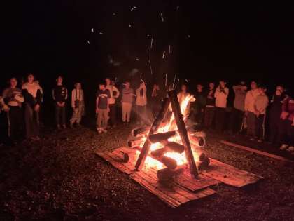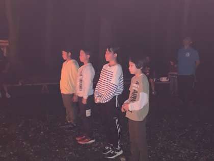 キャンプファイアーの最後に、燃える火を前に、それぞれが願い事を心に!