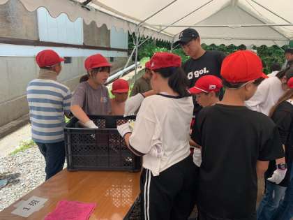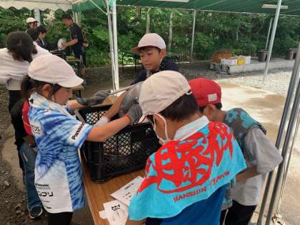 野外炊事が始まりました。