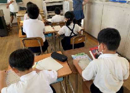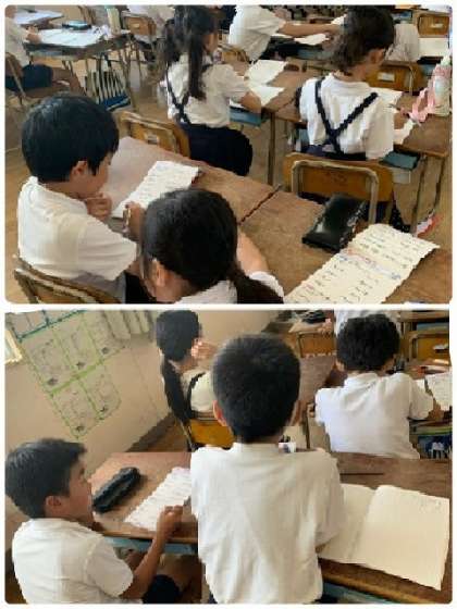 3年2組の算数の時間です。計算ドリルで、「かけ算とわり算」の練習に取り組んでいます。割り切れない「わり算」には少し戸惑っているようでしたが、少し考えると・・やり方を思い出していました。