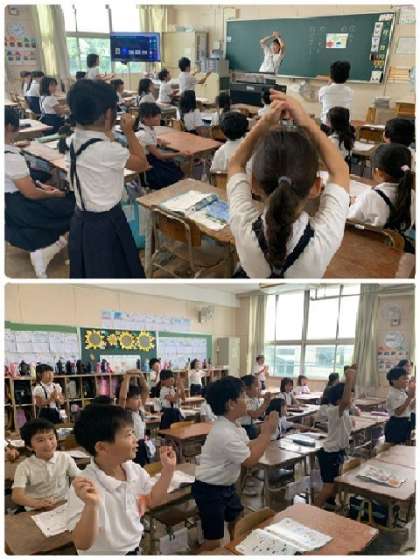 2年生 音楽〜楽しく活動しています! 公開日 2024/08/27 更新日 2024/08/27 お知らせ 2年生の教室では、久しぶりの音楽の学習が始まりました。常時活動で、楽しく発生したり・・体を動かしたり・・。笑顔いっぱいで取り組んでいます。今日の音楽の時間には、これまで学習した歌を、たくさん歌いました。みんな、とても楽しそうに取り組んでいます。 いいね(0)