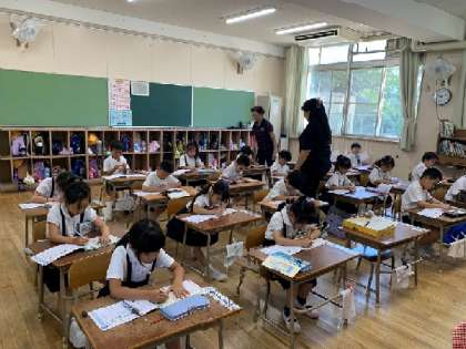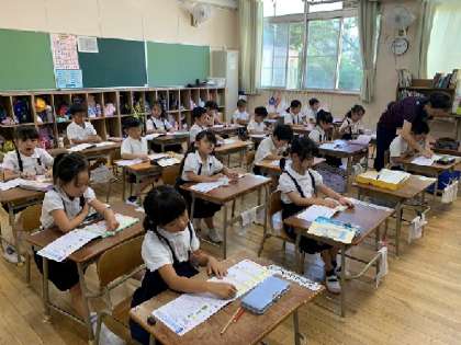 1年生 国語〜漢字の練習をしています! 公開日 2024/08/28 更新日 2024/08/28 お知らせ 1年1組の国語の時間です。授業の初めに、「漢字の練習」に取り組んでいます。今日の漢字は、「一(いち)」です。書き順をみんなで確認しました。さらに「漢字練習帳」の見本をなぞりながら再確認しました。そのうえで書く練習をしていました。ていねいに書いています。 いいね(0)
