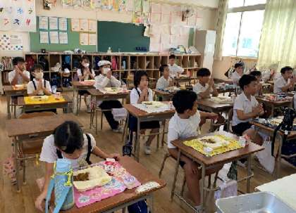 3年生 給食〜今日はみんな大好きな「カレーライス」! 公開日 2024/08/28 更新日 2024/08/28 お知らせ 3年1組の給食の様子です。係の児童が献立の話をしてくれました。そして、みんなで「いただきます!」・・大好きな献立に、思わず笑顔がこぼれます! いいね(0)
