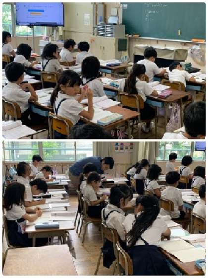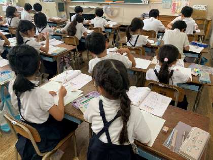 2年生の算数の時間です。これまで学習してきた内容の復習問題に取り組んでいます。学習してきたことを思い出しながら、問題に挑戦しました。