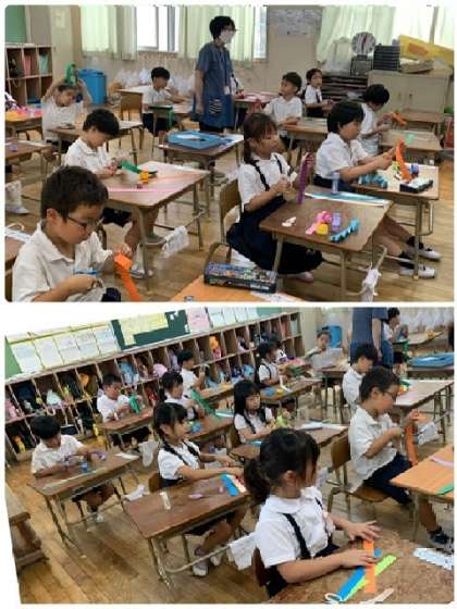 1年生 図工〜切ったり、折ったり、丸めたり・・!