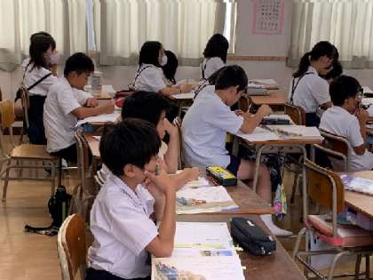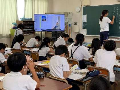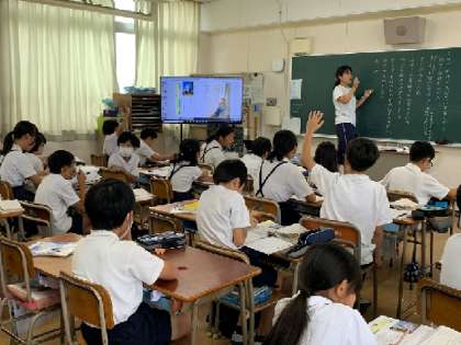 5年生の道徳の時間です。読み物教材「母さんの歌」を読んで、学習を進めています。「母さんの歌」は、広島の町に原子爆弾が落とされた日のことが題材となっています。道のほとりに立っているくすのきは、母さんが子どもに歌を歌っている、その歌声を聞いて、原爆が落とされた日のことを思い出しています。おさげがみの女学生が、迷子になって泣いているぼうやを抱いて、やさしい子守唄を歌っていました。そのぼうやは・・・、そして、女学生は・・・。情景を思い浮かべながら、女学生は、どんな思いで、ぼうやをだきつづけたのだろうかと考え、それぞれ気づいたことを交流しました。