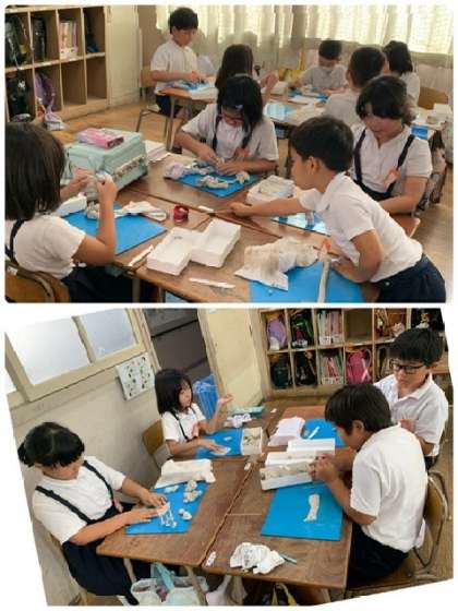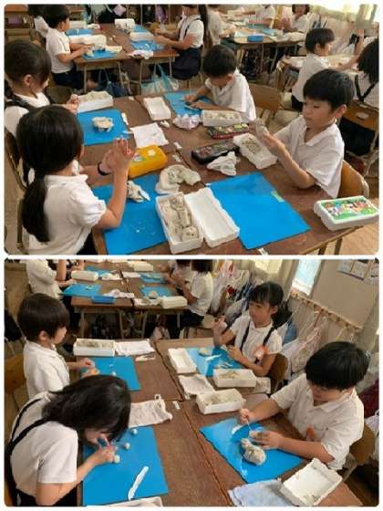 限られた量の粘土を、どう工夫して活用し、「おもいで」を表現するのか・・・それぞれが考えながら、作品づくりをしています。作成している作品を見せてくれながら、楽しそうに「思い出」についても話をしてくれました。
