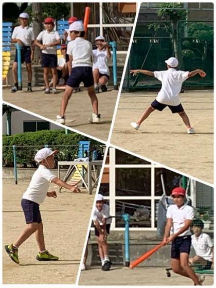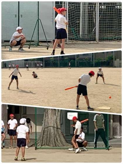 「スポーツクラブ」では、柔らかいボールを使って野球の試合を実施しています。