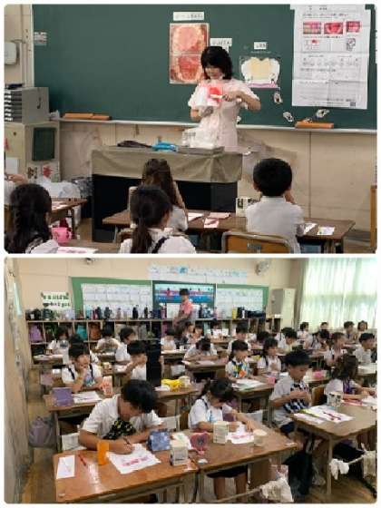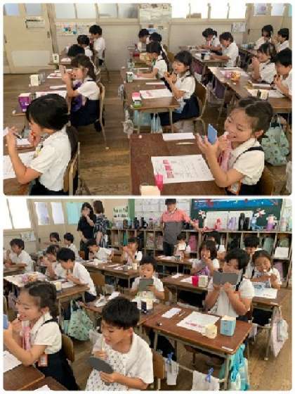2年生〜歯みがき指導をしていただきました! 公開日 2024/09/20 更新日 2024/09/20 お知らせ 虫歯がどのようにできるのかも、わかりやすく教えてもらいました。DVDを活用して、よい歯みがきの仕方も学びました。そして、赤い液を使って磨き残しがある場所を知りました。それぞれが持参した歯ブラシを使って、磨き残しの部分をきれいに磨く練習もしました。今日から、お家でも実践してくれると思います。 いいね(0)