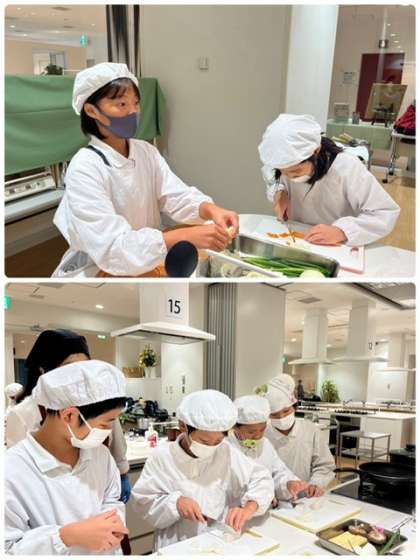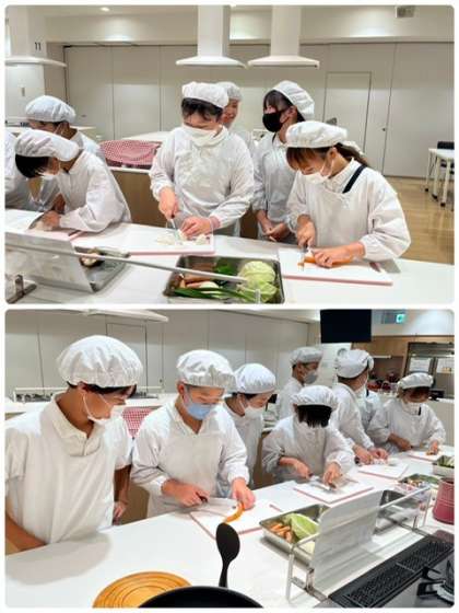 調理活動が始まりました。グループで協力して取り組んでいます。