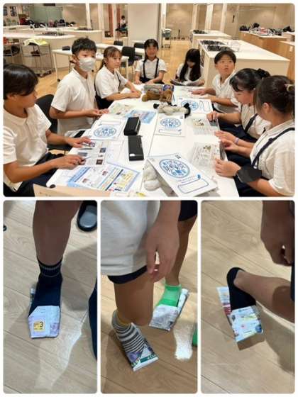 食事を終えて、「防災について」も学習させていただきました。学習の中で、災害時に、近くにある新聞紙等で作れる「スリッパ」の作成方法も教えていただきました。たくさんのことを、楽しく学ばせていただいた一日でした!
